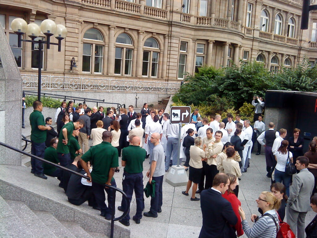 Als ich dann also auf Vanessa wartete, ging plötzlich der Alarm im Balmoral Hotel los und eine Horde Köche, Kellner, Zimmermädchen, Pagen, und andere Angestellte, überschwemmten den ohnehin viel zu schmalen Gehweg.